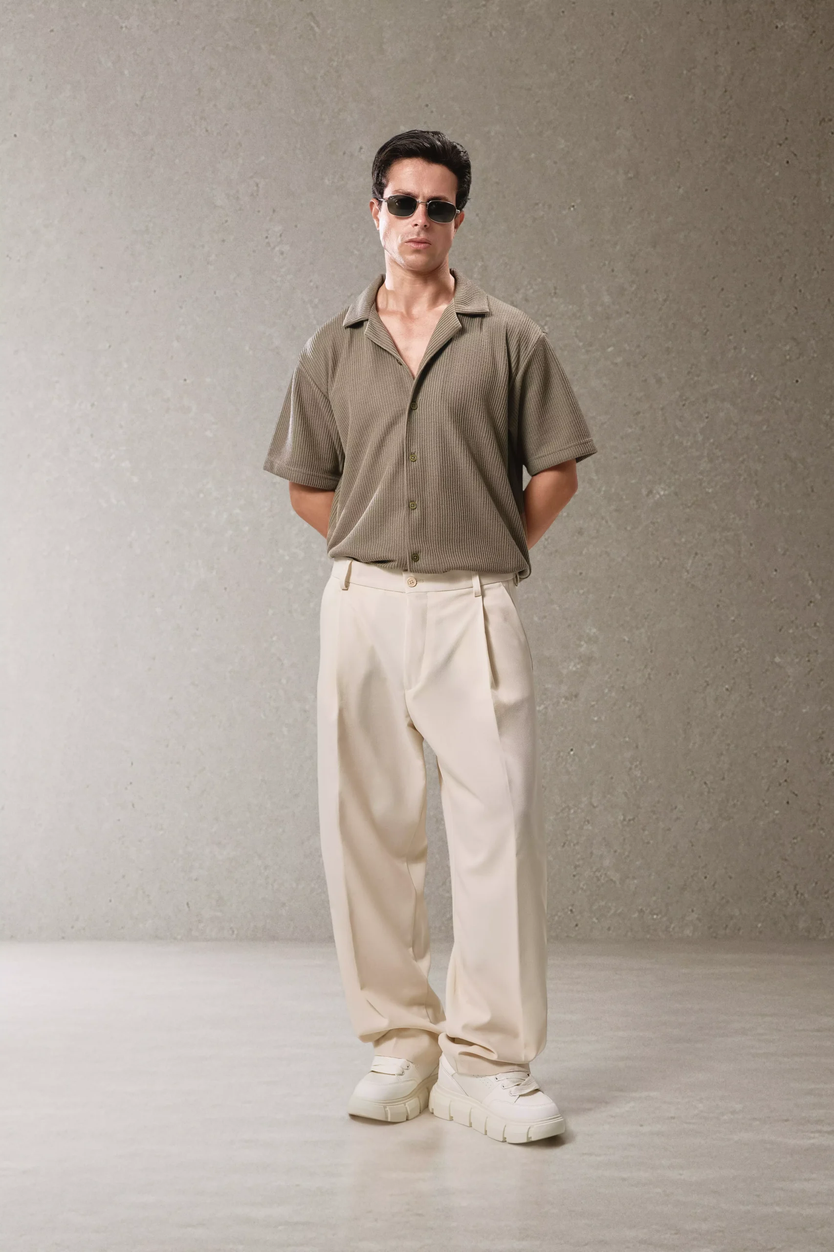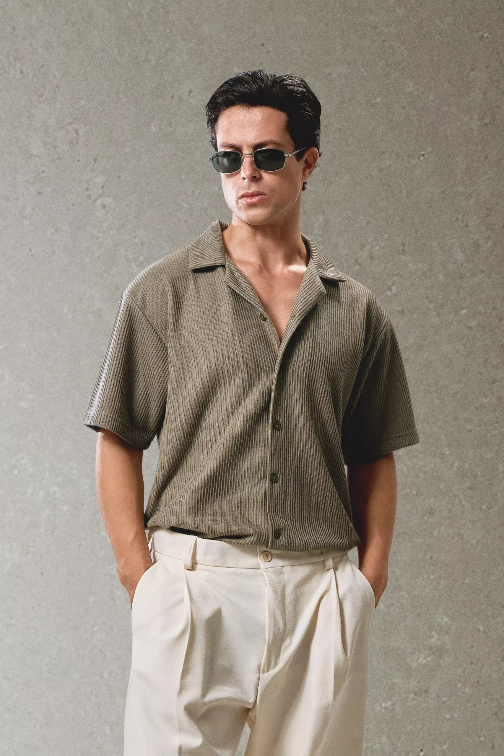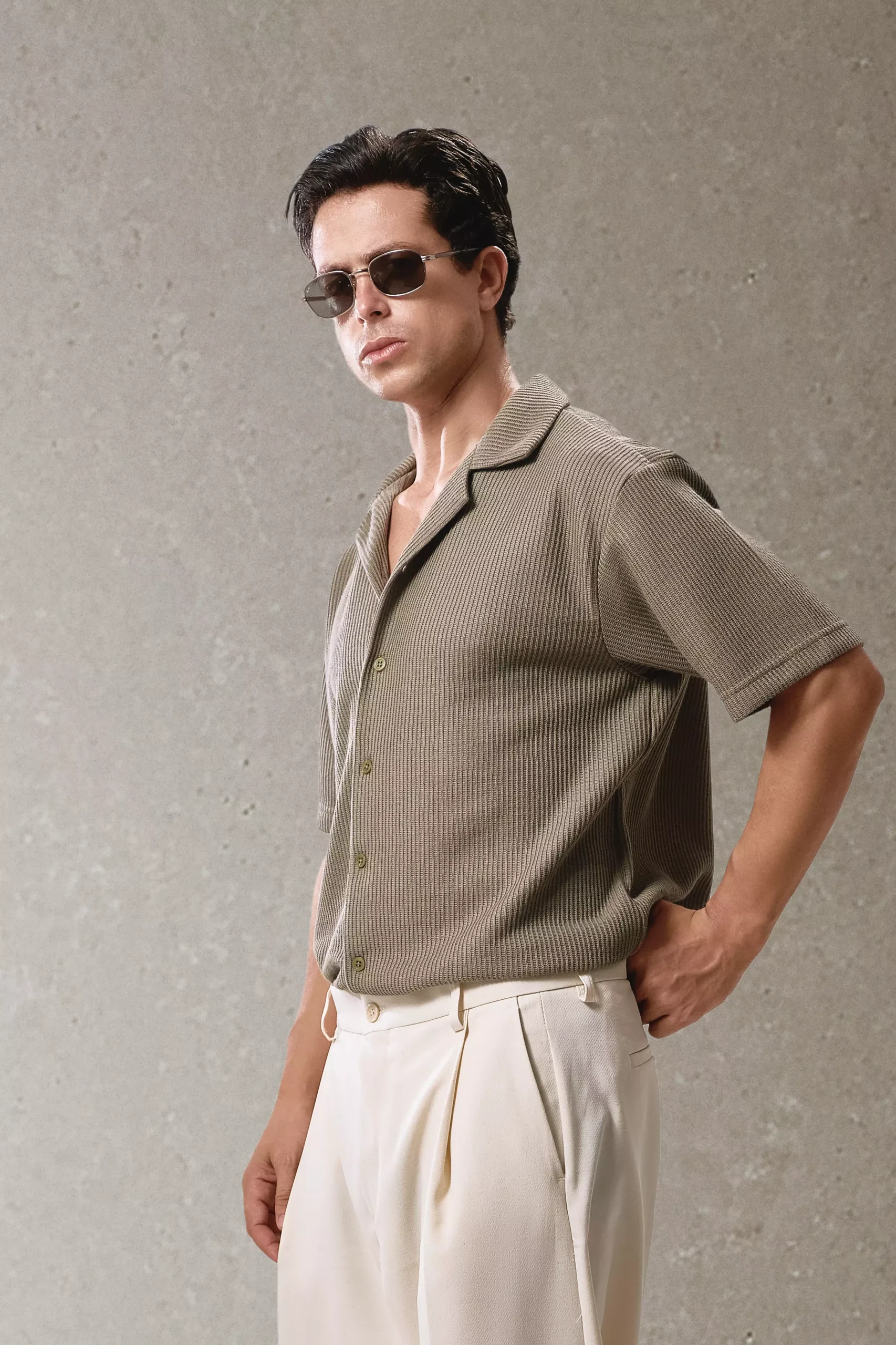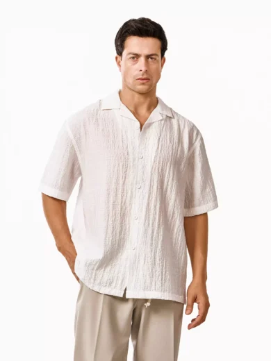أضف لمسة من الأناقة إلى إطلالتك مع هذا القميص الرجالي المصنوع من خامة كروشيه ناعمة ومريحة. يتميز القميص بقَصّة كلاسيكية وياقة مفتوحة تمنحك مظهرًا أنيقًا وغير رسمي في آنٍ واحد، لتناسب ذوقك الشخصي. مثالي للإطلالات الصيفية اليومية أو المناسبات الكاجوال الأنيقة.