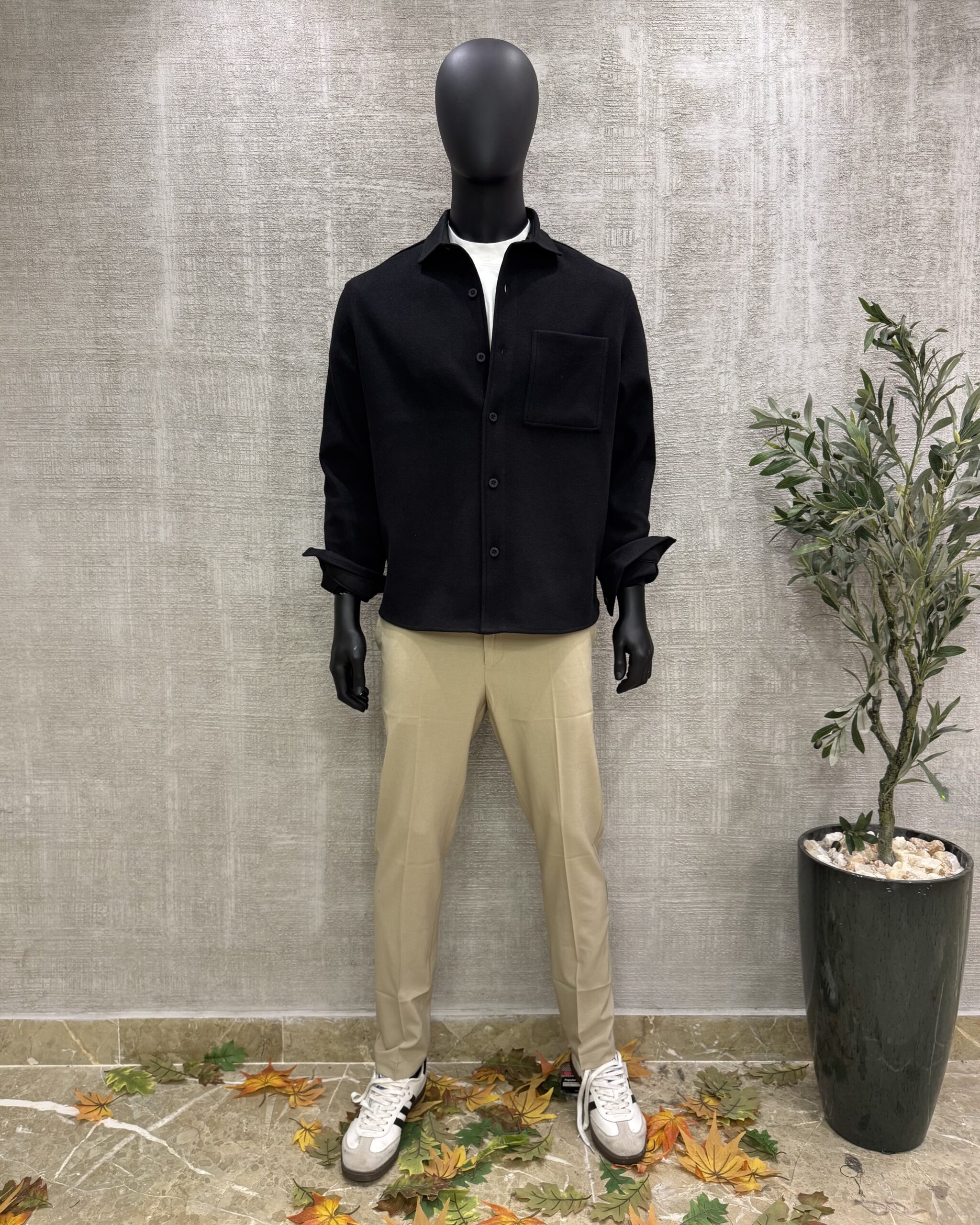 wool shirt Jacket-Black